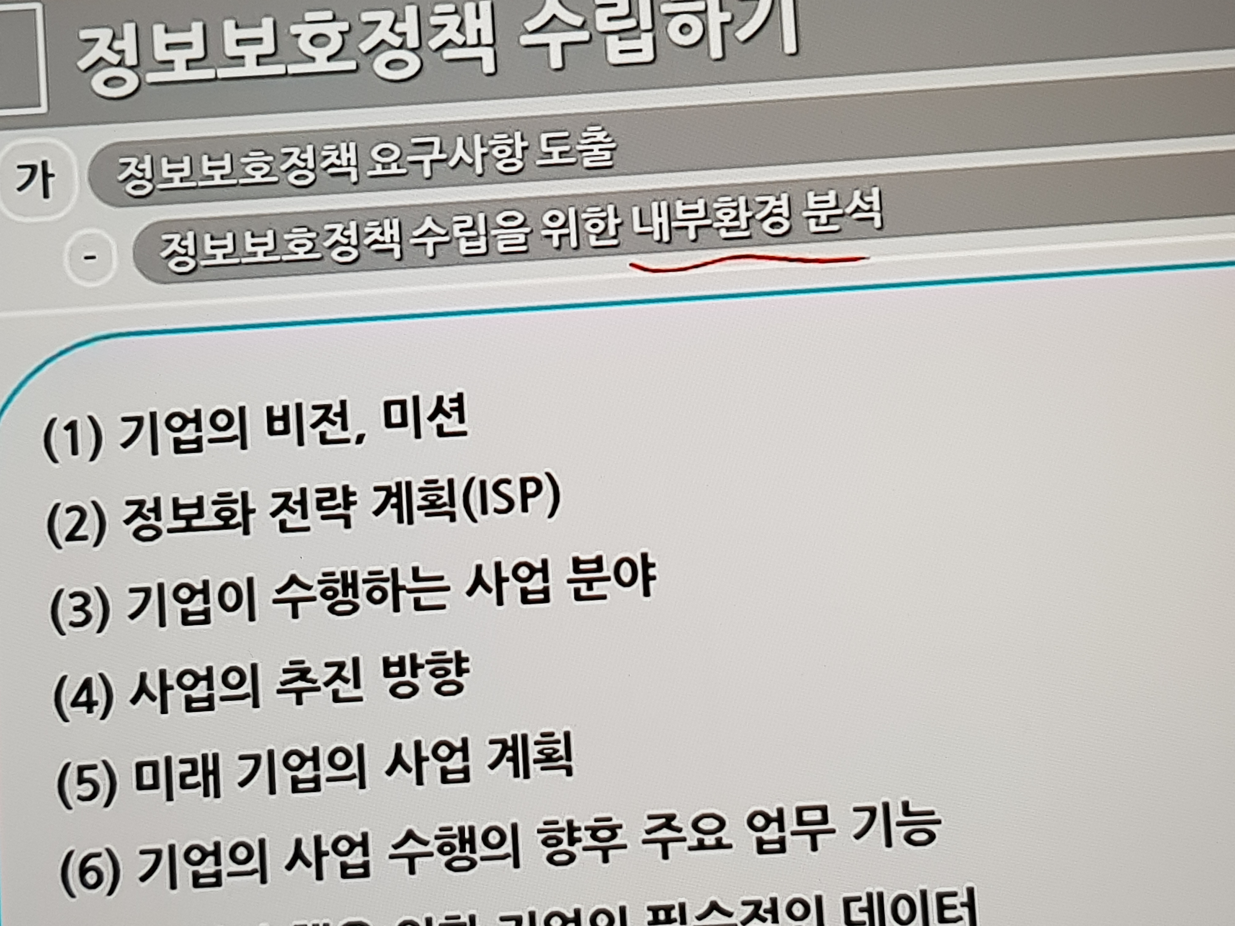정보보호법과 관련된 규정에 대해서도 공부할 수 있고, 아무래도 정보기술이라는 분야의 기업에서 가장 핵심적으로 운영되는 요소니까 기업내에서 어떻게 기획되고, 운영되고 관리되어야 하는지 등의 개념을 이해할 수 있었어요.